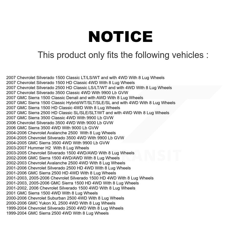 | 2005 | Chevrolet | Avalanche 2500 | With 8 Lug Wheels | Front |