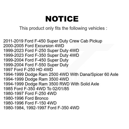 | 2000 | Ford | F-350 Super Duty | 4WD | Front Upper |