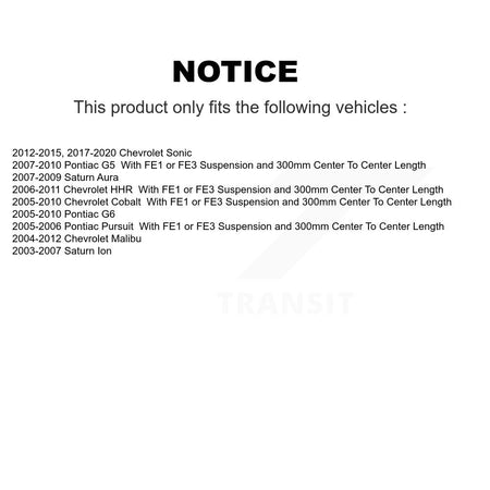 Front Suspension Stabilizer Bar Link Kit 72-K80252 For Chevrolet Cobalt Malibu Pontiac Sonic G5 G6
