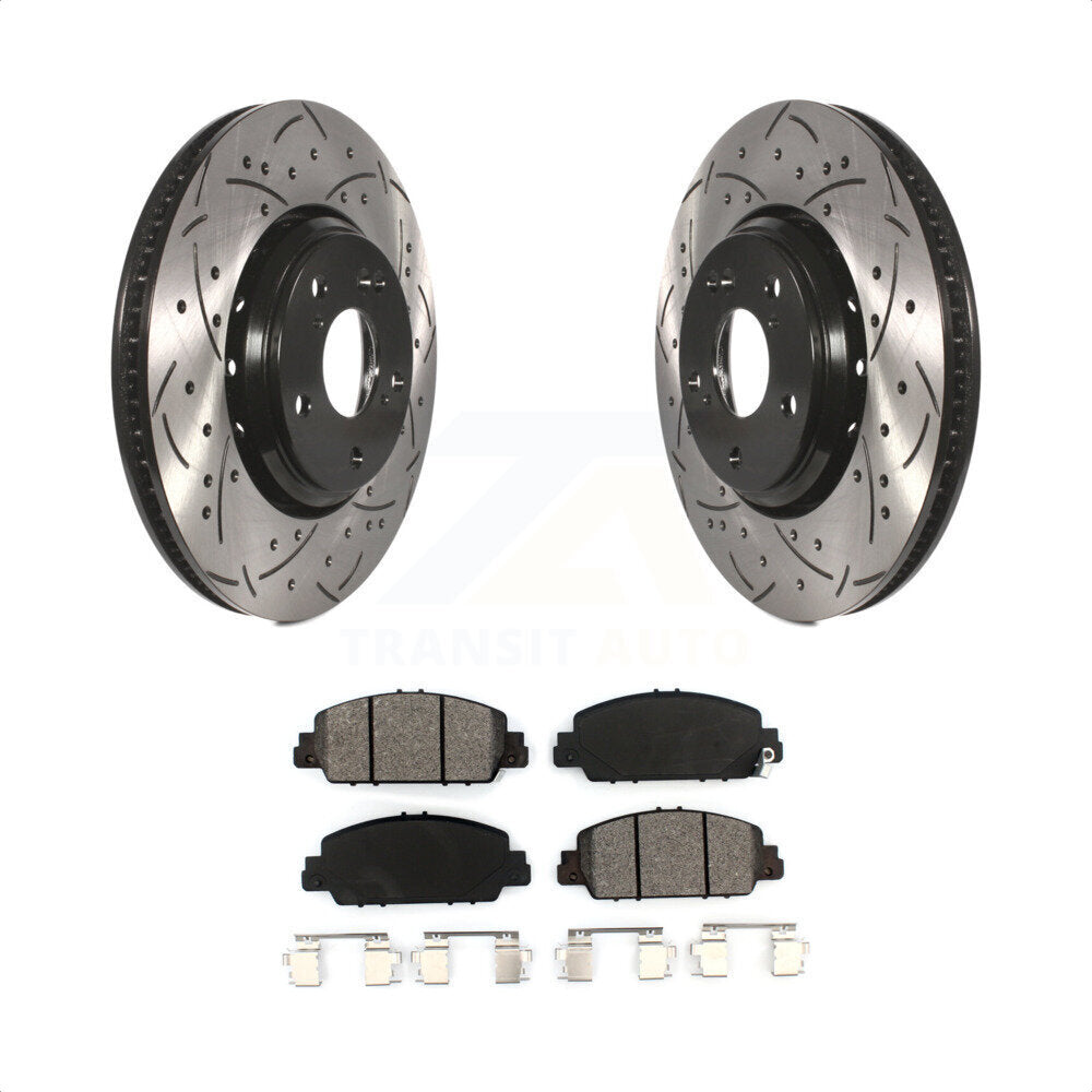 Front Coated Drilled Slotted Disc Brake Rotors And Semi-Metallic Pads Kit For 2017 Honda Accord Hybrid EX-L Touring KDS-100170