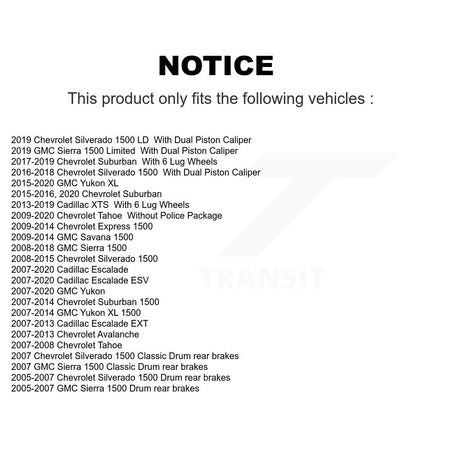 | 2019 | Chevrolet | Silverado 1500 LD | With Dual Piston Caliper | Front |