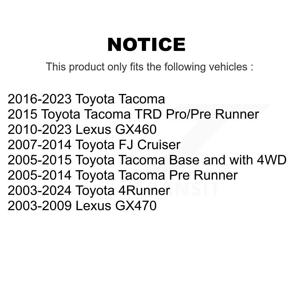 | 2008 | Toyota | Tacoma | Base and with 4WD | Front |