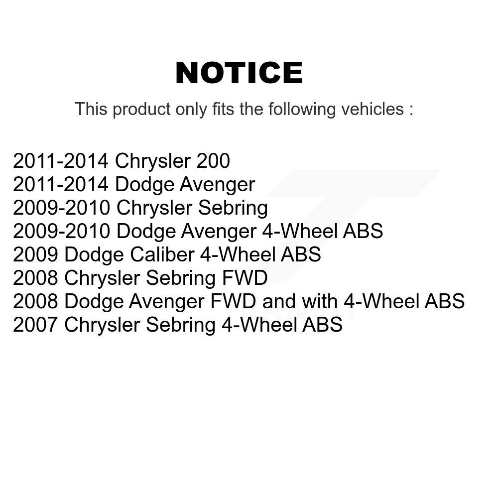 Front Rear Wheel Bearing & Hub Assembly Kit For Chrysler Dodge Avenger 200 Sebring Caliber K70-101252