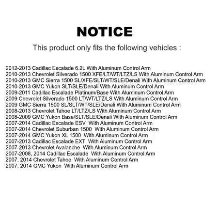 | 2014 | GMC | Yukon | With Aluminum Control Arm | Front |