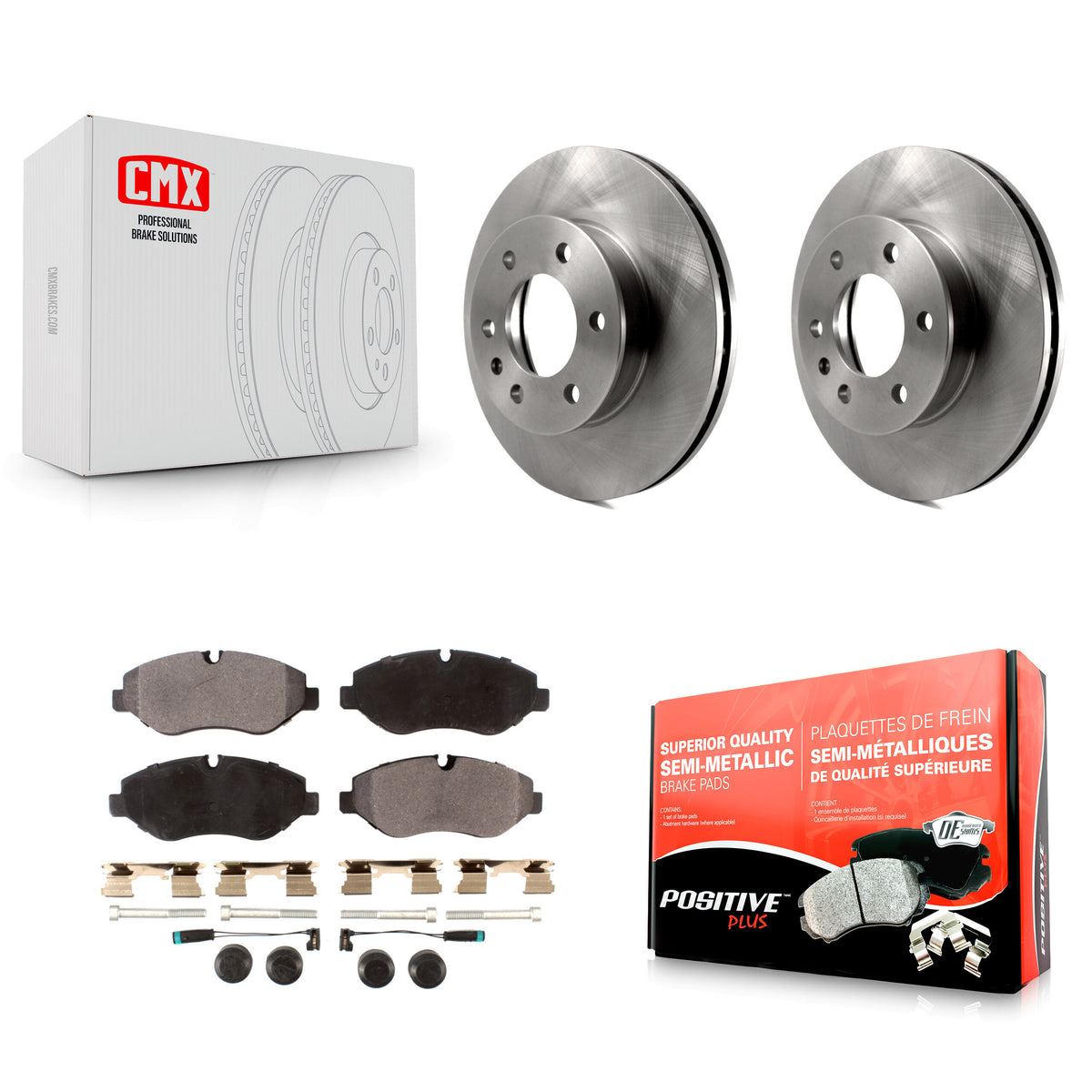- 1x Front Semi-Metallic Positive Plus Brake Pad Set (With Sensor) (Hardware Included)