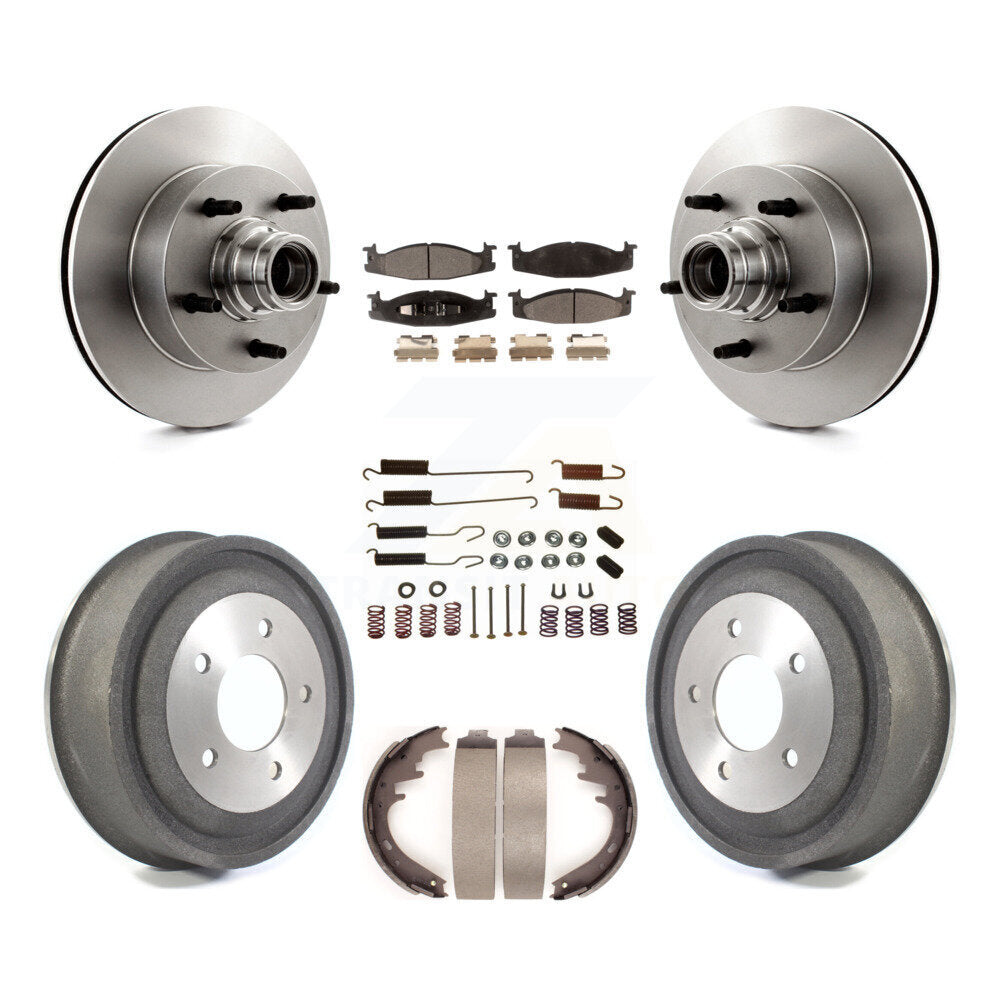Front Rear Disc Brake Rotors Hub Assembly Semi-Metallic Pads And Drum Kit (7Pc) For Ford E-150 Econoline Club Wagon K8F-102169