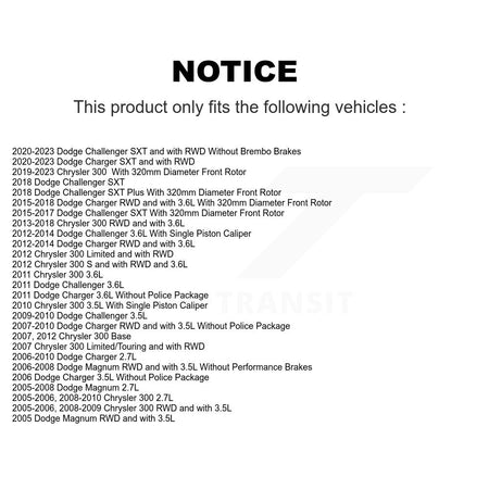 | 2023 | Chrysler | 300 | With 320mm Diameter Front Rotor | Front |