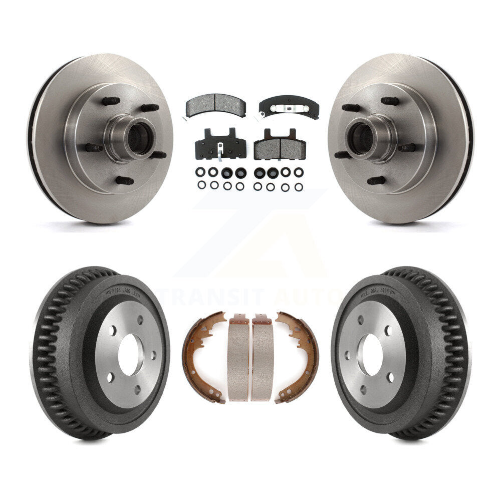 Front Rear Disc Brake Rotors Hub Assembly Semi-Metallic Pads And Drum Kit For 1994-1999 Dodge Ram 1500 RWD K8S-103491