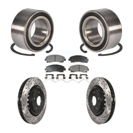 Front Wheel Bearing With Coated Drilled Slotted Disc Brake Rotors And Semi-Metallic Pads Kit For 2015-2019 Acura TLX KBB-101068