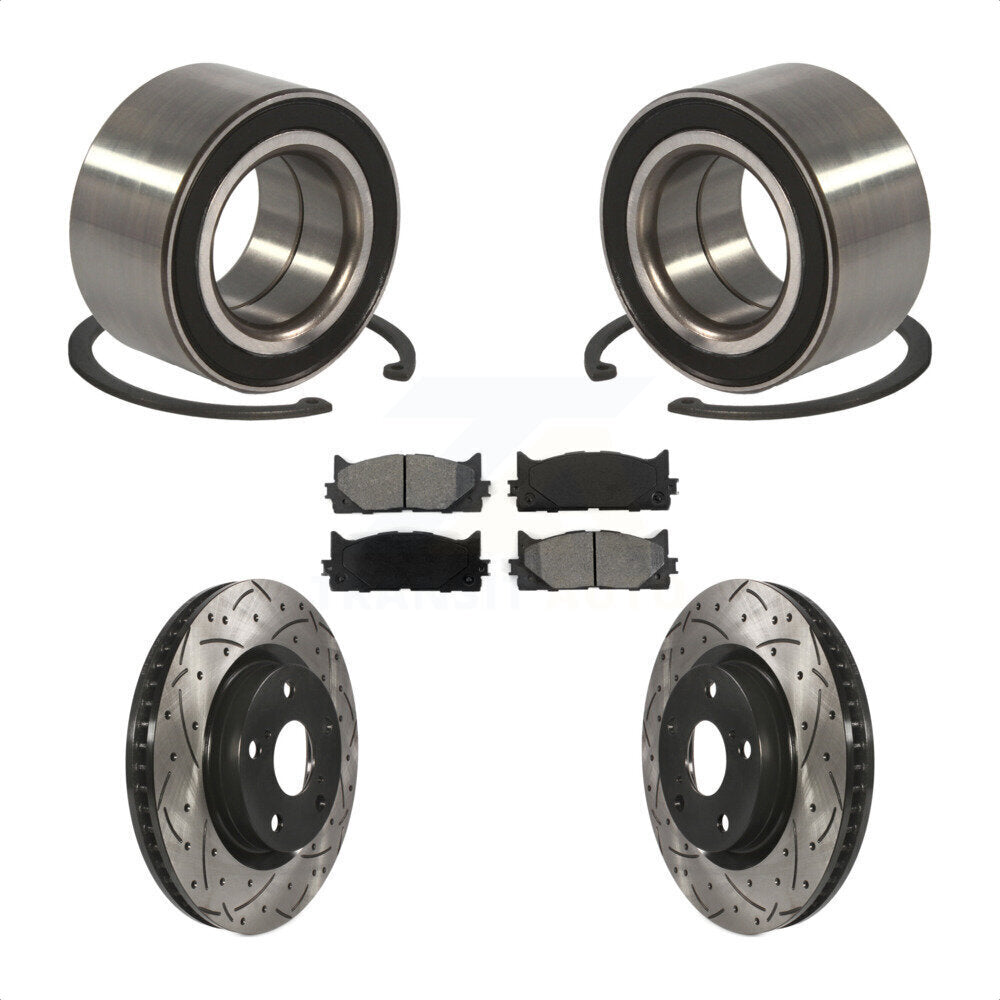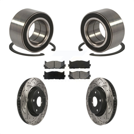 Front Wheel Bearing With Coated Drilled Slotted Disc Brake Rotors And Semi-Metallic Pads Kit For Toyota Camry Lexus ES350 Avalon ES300h KBB-101084
