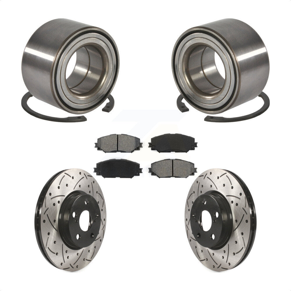 Front Wheel Bearing With Coated Drilled Slotted Disc Brake Rotors And Semi-Metallic Pads Kit For Toyota Corolla Matrix Pontiac Vibe KBB-101088