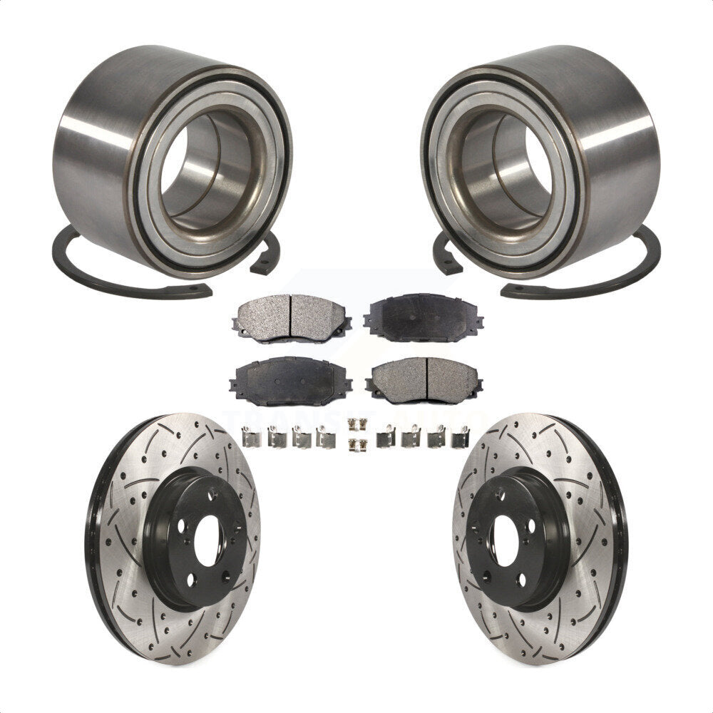 Front Wheel Bearing With Coated Drilled Slotted Disc Brake Rotors And Ceramic Pads Kit For Toyota Corolla Matrix Pontiac Vibe KBB-101175