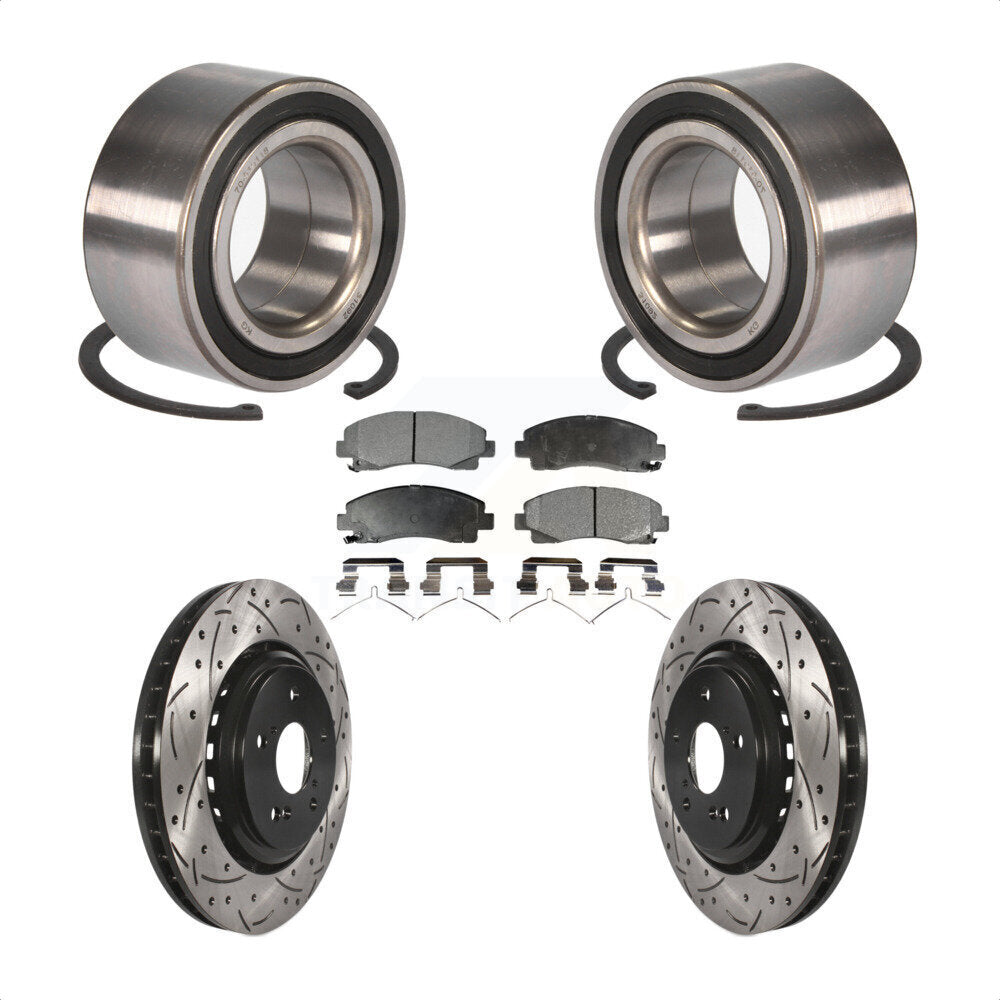 Front Wheel Bearing With Coated Drilled Slotted Disc Brake Rotors And Ceramic Pads Kit For 2015-2019 Acura TLX KBB-101250