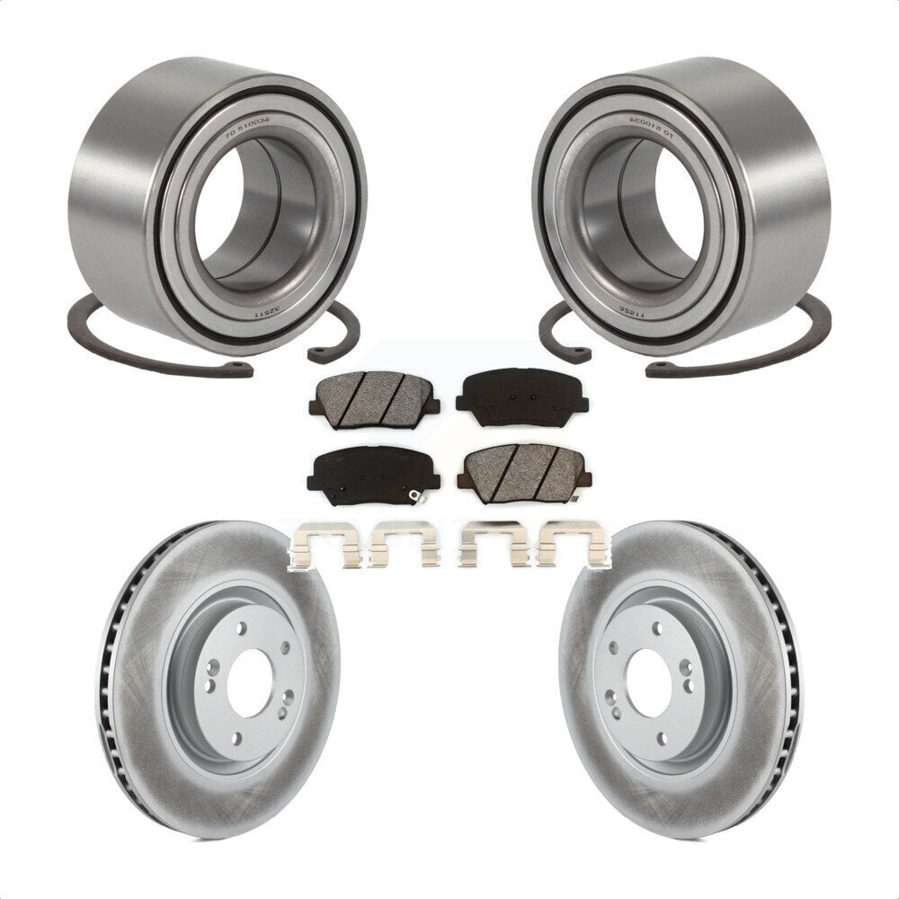 Front Wheel Bearing With Coated Disc Brake Rotors And Semi-Metallic Pads Kit For 2012-2017 Hyundai Azera KBB-101617