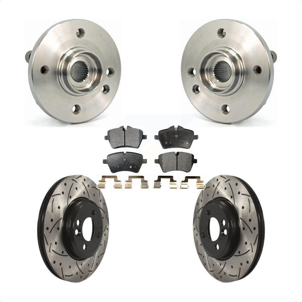 Front Hub Bearing Assembly With Coated Drilled Slotted Disc Brake Rotors And Semi-Metallic Pads Kit For 2002-2006 Mini Cooper 294mm Diameter Rotor 4 Lug Wheels KBB-102878