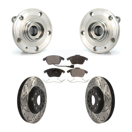 Front Hub Bearing Assembly With Coated Drilled Slotted Disc Brake Rotors And Semi-Metallic Pads Kit For Volkswagen Jetta Beetle CC Passat GTI Audi Eos A3 TT Quattro Golf KBB-102880