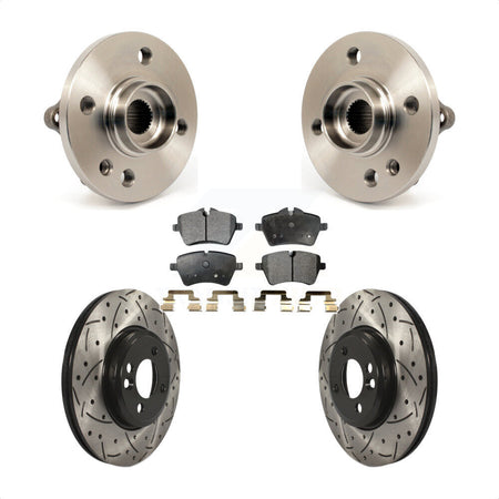Front Hub Bearing Assembly With Coated Drilled Slotted Disc Brake Rotors And Semi-Metallic Pads Kit For Mini Cooper 294mm Diameter Rotor 4 Lug Wheels KBB-102942