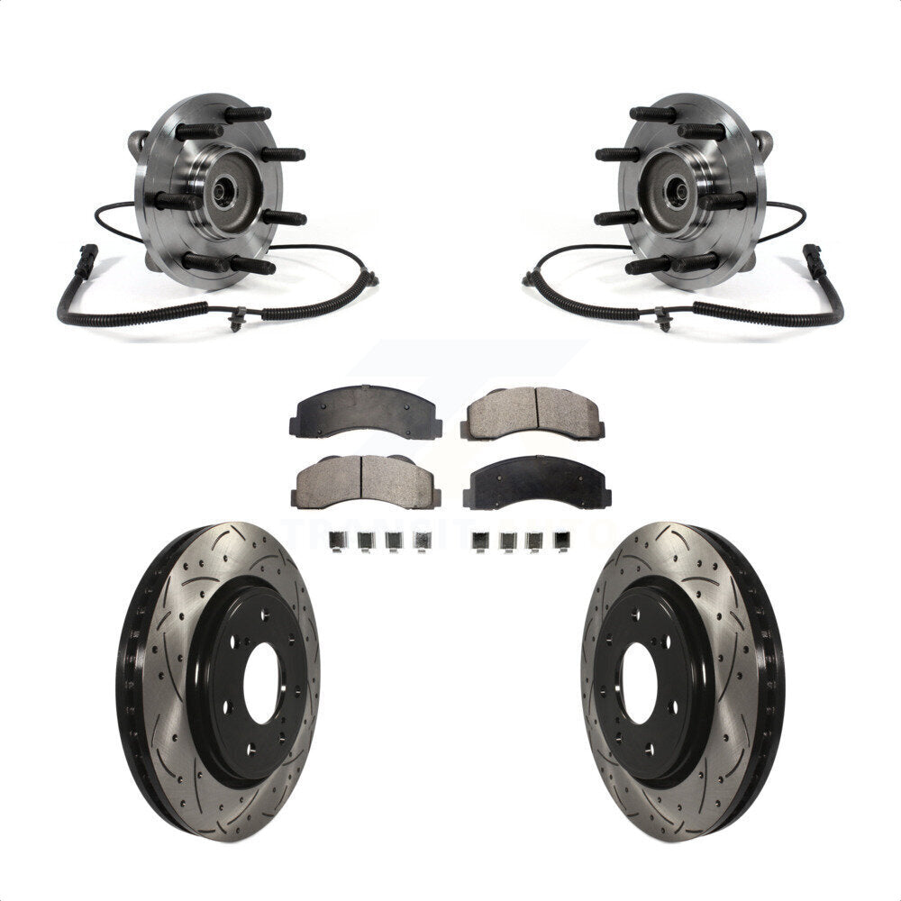 Front Hub Bearing Assembly With Coated Drilled Slotted Disc Brake Rotors And Semi-Metallic Pads Kit For Ford F-150 KBB-102953