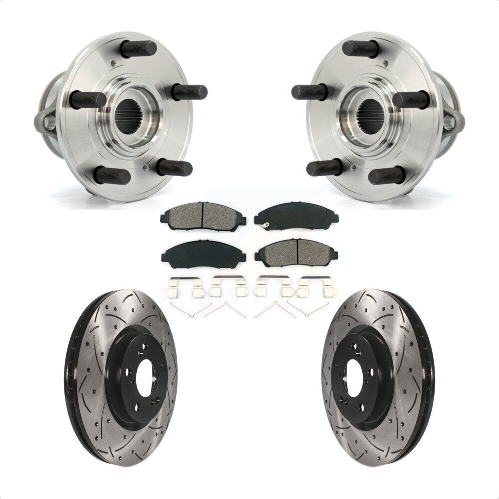 Front Hub Bearing Assembly With Coated Drilled Slotted Disc Brake Rotors And Semi-Metallic Pads Kit For Honda Pilot Acura MDX ZDX KBB-103097