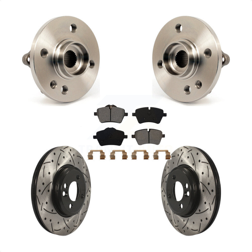 Front Hub Bearing Assembly With Coated Drilled Slotted Disc Brake Rotors And Semi-Metallic Pads Kit For Mini Cooper 294mm Diameter Rotor 4 Lug Wheels KBB-103133