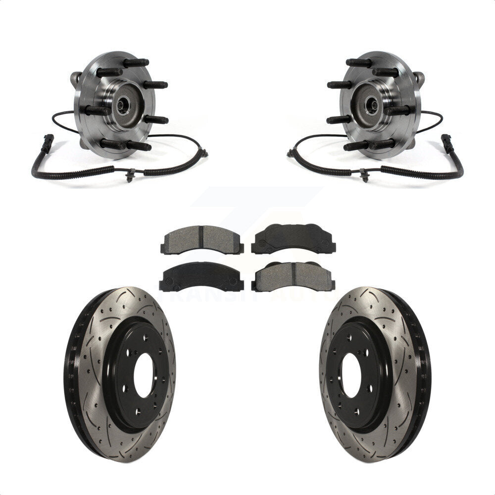 Front Hub Bearing Assembly With Coated Drilled Slotted Disc Brake Rotors And Semi-Metallic Pads Kit For Ford F-150 KBB-103144