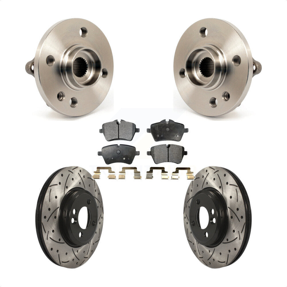 Front Hub Bearing Assembly With Coated Drilled Slotted Disc Brake Rotors And Ceramic Pads Kit For Mini Cooper 294mm Diameter Rotor 4 Lug Wheels KBB-103336