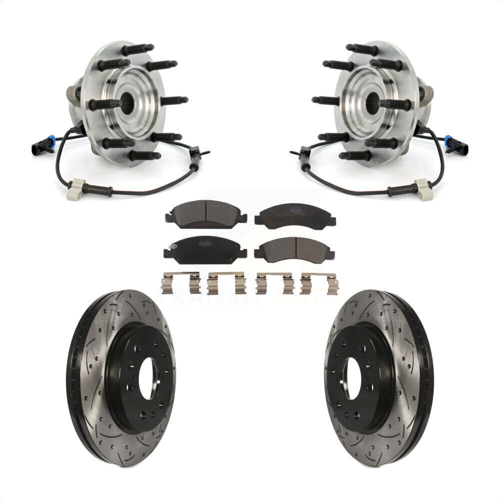 Front Hub Bearing Assembly With Coated Drilled Slotted Disc Brake Rotors And Ceramic Pads Kit For Chevrolet Silverado 1500 GMC Sierra Classic 8 Lug Wheels KBB-103387