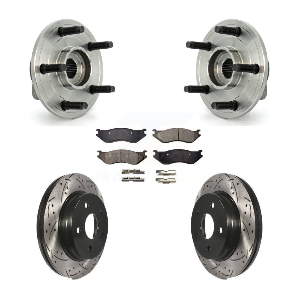 Front Hub Bearing Assembly With Coated Drilled Slotted Disc Brake Rotors And Ceramic Pads Kit For Dodge Ram 1500 5 Lug Wheels KBB-103390