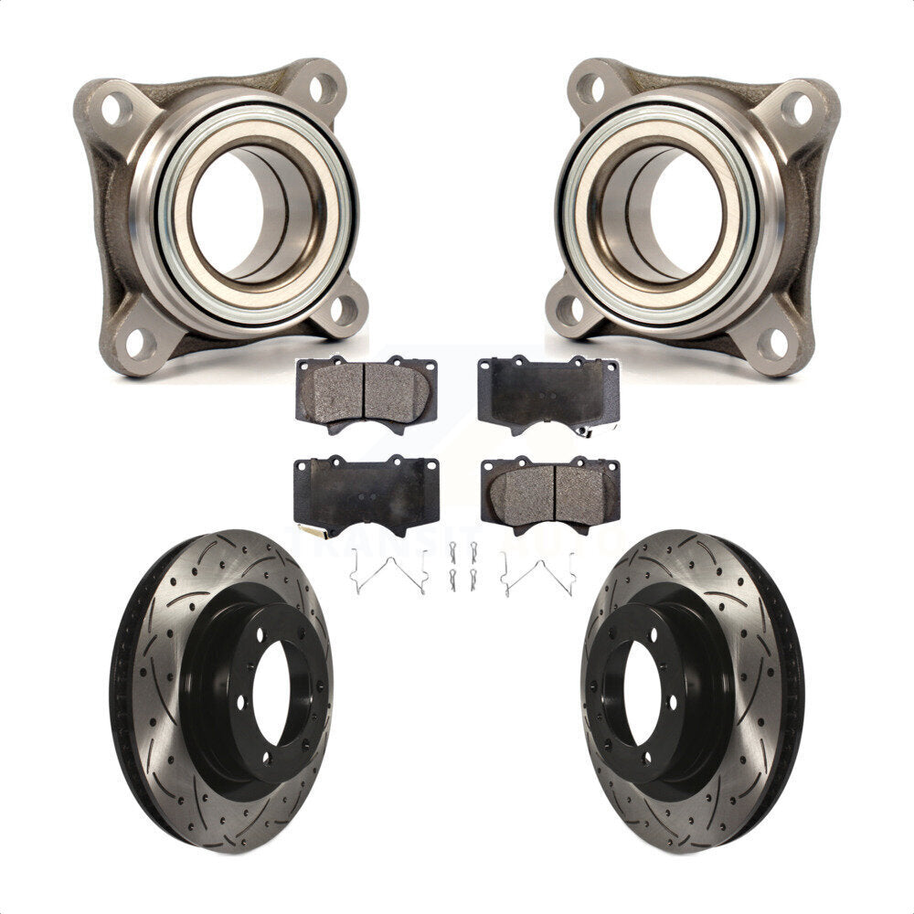 Front Wheel Bearing With Coated Drilled Slotted Disc Brake Rotors And Ceramic Pads Kit For 2010-2022 Toyota 4Runner RWD Module KBB-106065