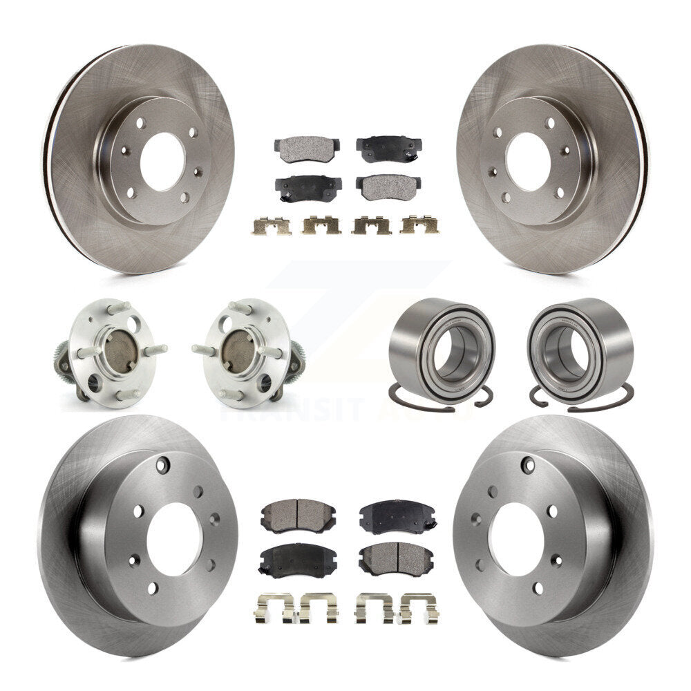 Front Rear Wheel Hub Bearings Assembly Disc Brake Rotors And Semi-Metallic Pads Kit (10Pc) For Kia Optima Hyundai Sonata Magentis Non-ABS KBB-106185