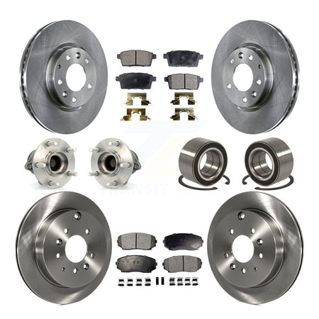 Front Rear Wheel Hub Bearings Assembly Disc Brake Rotors And Semi-Metallic Pads Kit (10Pc) For 2007-2012 Mazda CX-7 FWD KBB-106285