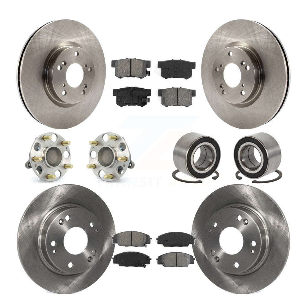 Front Rear Wheel Hub Bearings Assembly Disc Brake Rotors And Semi-Metallic Pads Kit (10Pc) For Honda Civic Acura CSX KBB-106597