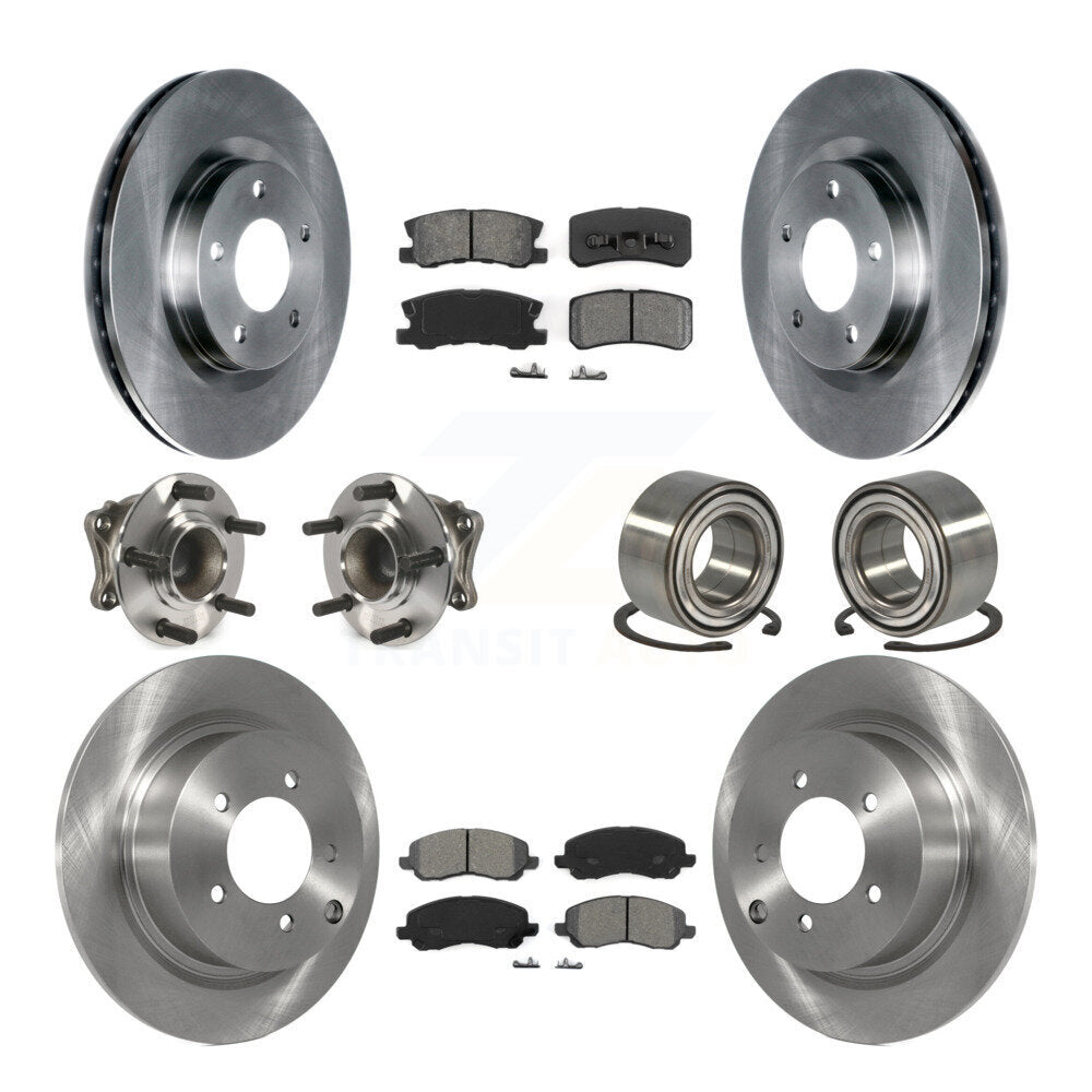 Front Rear Wheel Hub Bearings Assembly Disc Brake Rotors And Semi-Metallic Pads Kit (10Pc) For Mitsubishi Outlander FWD with 2.4L KBB-106702