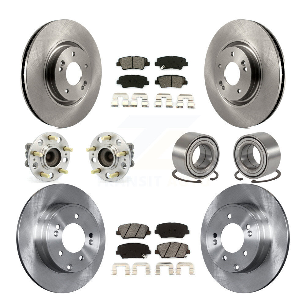 Front Rear Wheel Hub Bearings Assembly Disc Brake Rotors And Semi-Metallic Pads Kit (10Pc) For Hyundai Azera KBB-106764