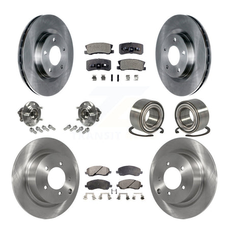 Front Rear Wheel Hub Bearings Assembly Disc Brake Rotors And Ceramic Pads Kit (10Pc) For Mitsubishi Outlander Without 7 Passenger Seating KBB-107104