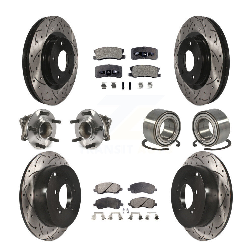 Front Rear Wheel Hub Bearings Assembly Coated Disc Brake Rotors And Semi-Metallic Pads Kit (10Pc) For Mitsubishi Outlander KBB-107348