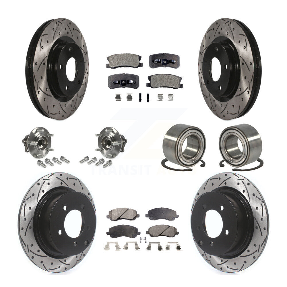 Front Rear Wheel Hub Bearings Assembly Coated Disc Brake Rotors And Semi-Metallic Pads Kit (10Pc) For Mitsubishi Outlander Without 7 Passenger Seating KBB-107349