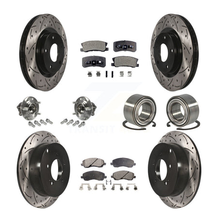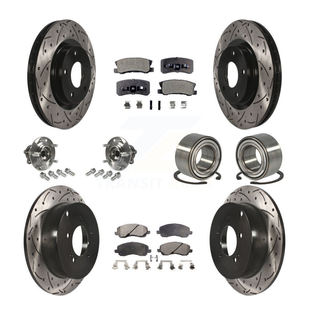 Front Rear Wheel Hub Bearings Assembly Coated Disc Brake Rotors And Semi-Metallic Pads Kit (10Pc) For Mitsubishi Outlander Without 7 Passenger Seating KBB-107351