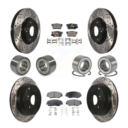 Front Rear Wheel Bearings Coated Disc Brake Rotors And Semi-Metallic Pads Kit (10Pc) For 2005-2006 Honda CR-V KBB-107424