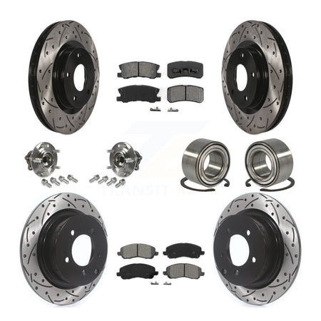 Front Rear Wheel Hub Bearings Assembly Coated Disc Brake Rotors And Semi-Metallic Pads Kit (10Pc) For Mitsubishi Outlander Without 7 Passenger Seating KBB-107448