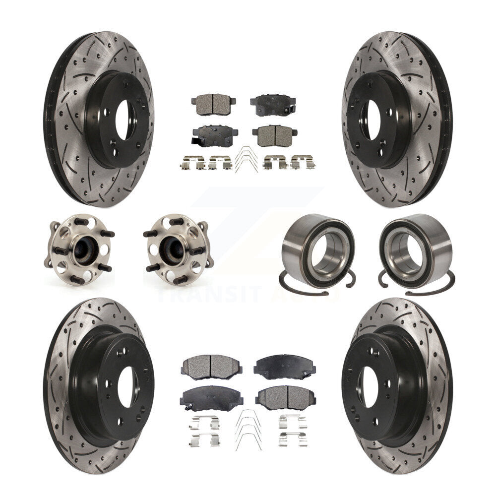 Front Rear Wheel Hub Bearings Assembly Coated Disc Brake Rotors And Ceramic Pads Kit (10Pc) For Honda Accord KBB-107532