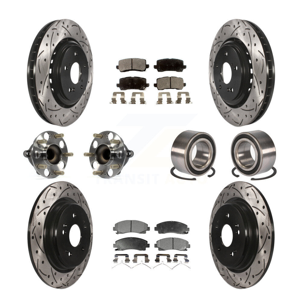 Front Rear Wheel Hub Bearings Assembly Coated Disc Brake Rotors And Ceramic Pads Kit (10Pc) For 2015-2019 Acura TLX FWD KBB-107601