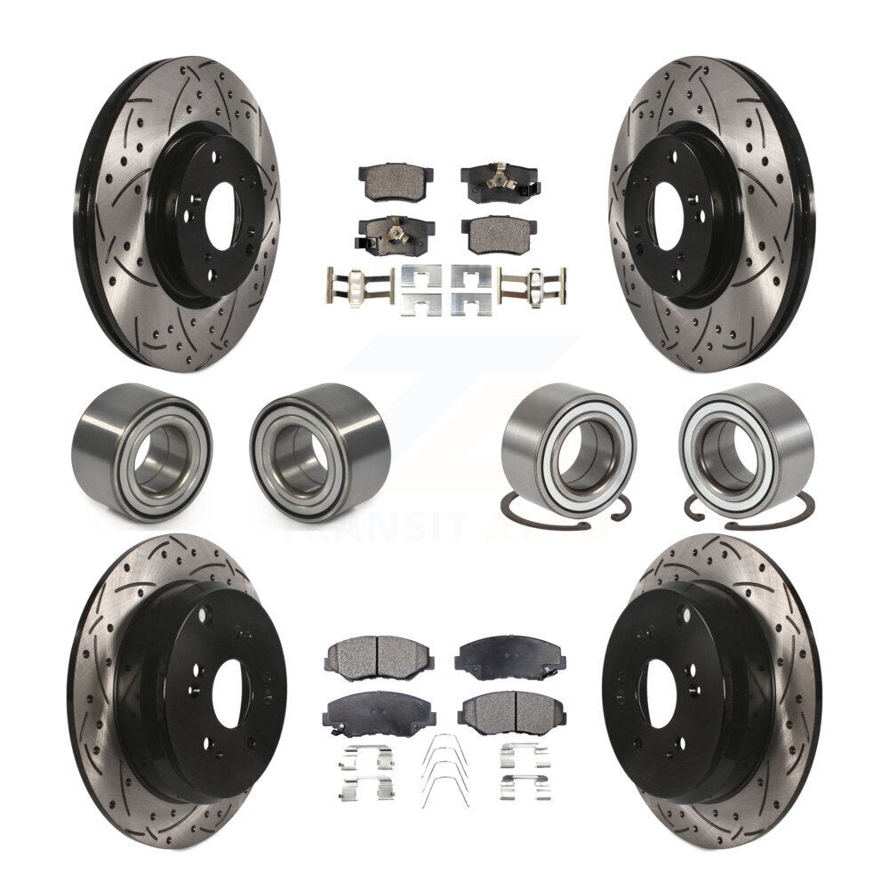 Front Rear Wheel Bearings Coated Disc Brake Rotors And Ceramic Pads Kit (10Pc) For 2005-2006 Honda CR-V KBB-107613