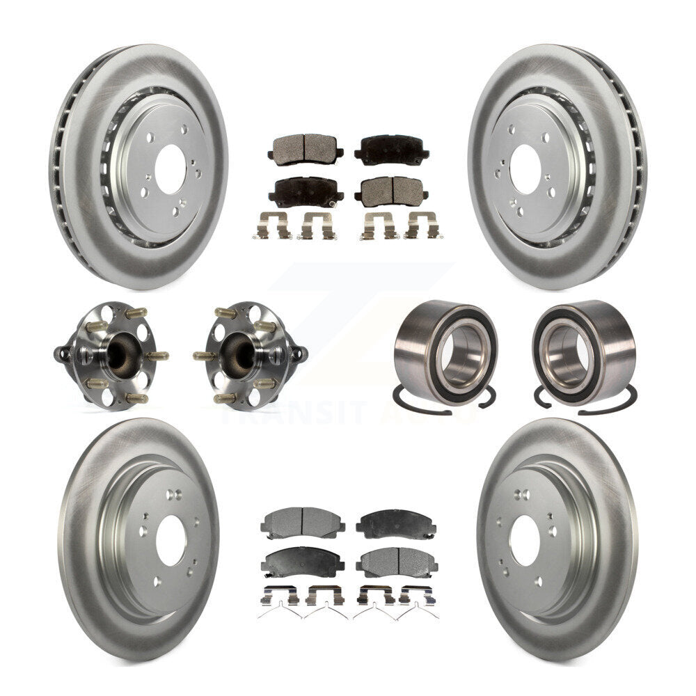 Front Rear Wheel Hub Bearings Assembly Coated Disc Brake Rotors And Semi-Metallic Pads Kit (10Pc) For 2015-2019 Acura TLX FWD KBB-107888