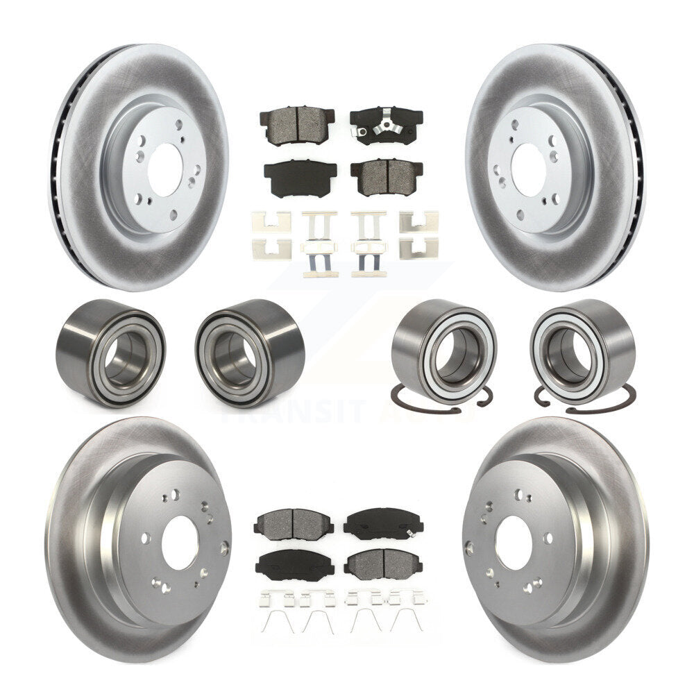 Front Rear Wheel Bearings Coated Disc Brake Rotors And Semi-Metallic Pads Kit (10Pc) For 2005-2006 Honda CR-V KBB-108275