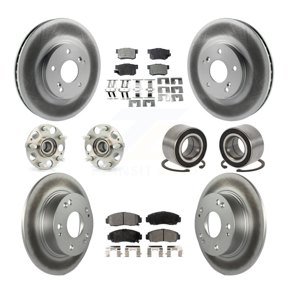 Front Rear Wheel Hub Bearings Assembly Coated Disc Brake Rotors And Ceramic Pads Kit (10Pc) For Honda Accord KBB-108327