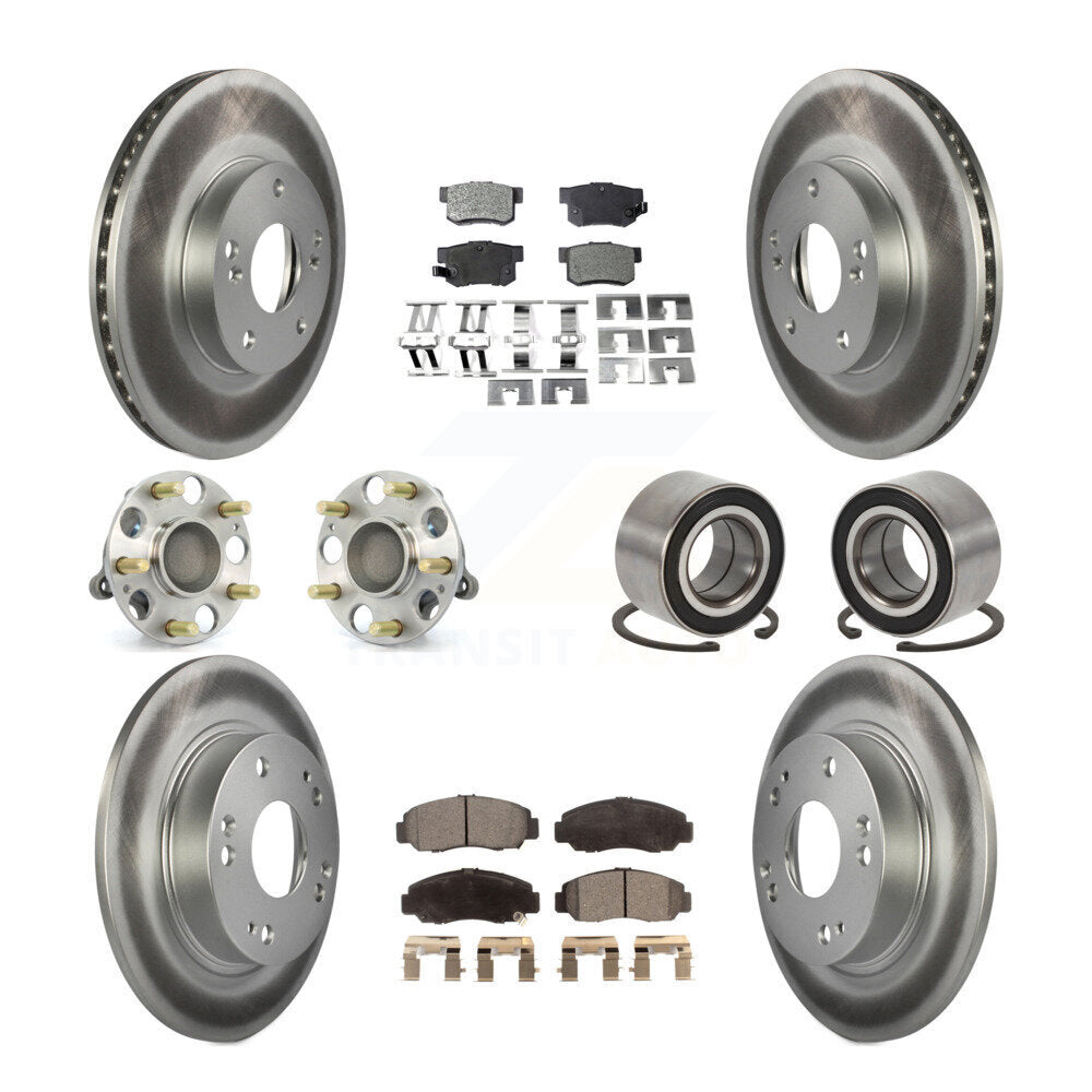 Front Rear Wheel Hub Bearings Assembly Coated Disc Brake Rotors And Ceramic Pads Kit (10Pc) For Acura CSX KBB-108356