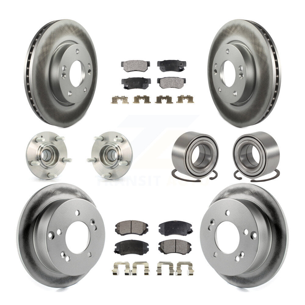 Front Rear Wheel Hub Bearings Assembly Coated Disc Brake Rotors And Ceramic Pads Kit (10Pc) For Kia Sportage Hyundai Tucson FWD KBB-108370