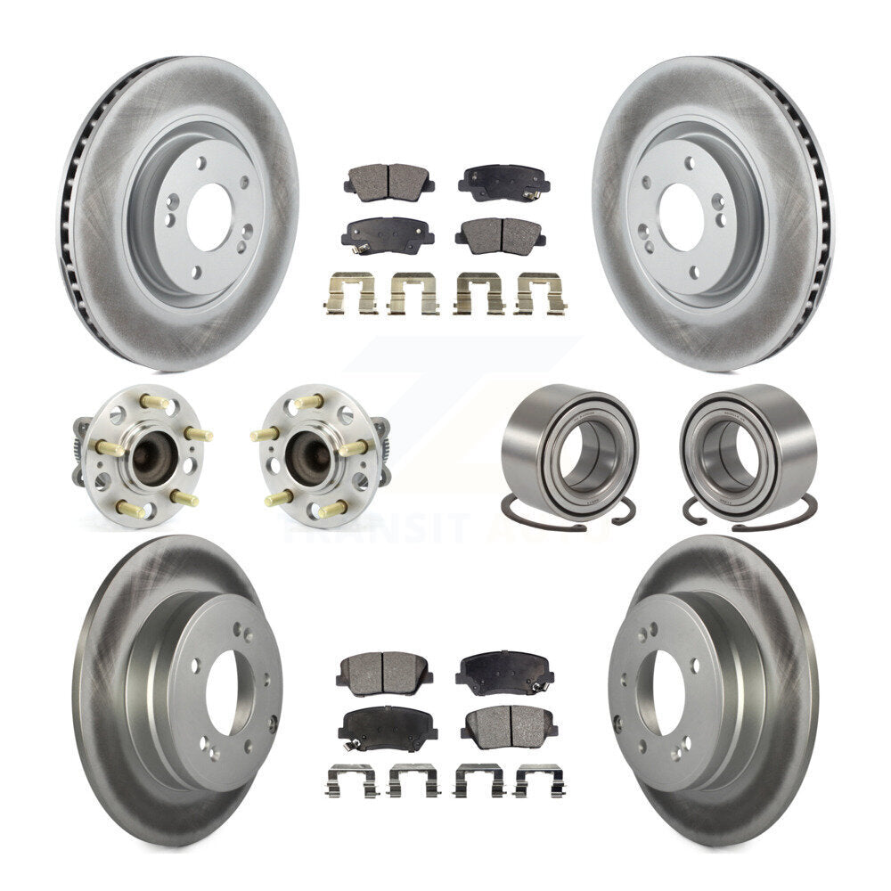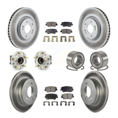 Front Rear Wheel Hub Bearings Assembly Coated Disc Brake Rotors And Ceramic Pads Kit (10Pc) For Hyundai Azera KBB-108521