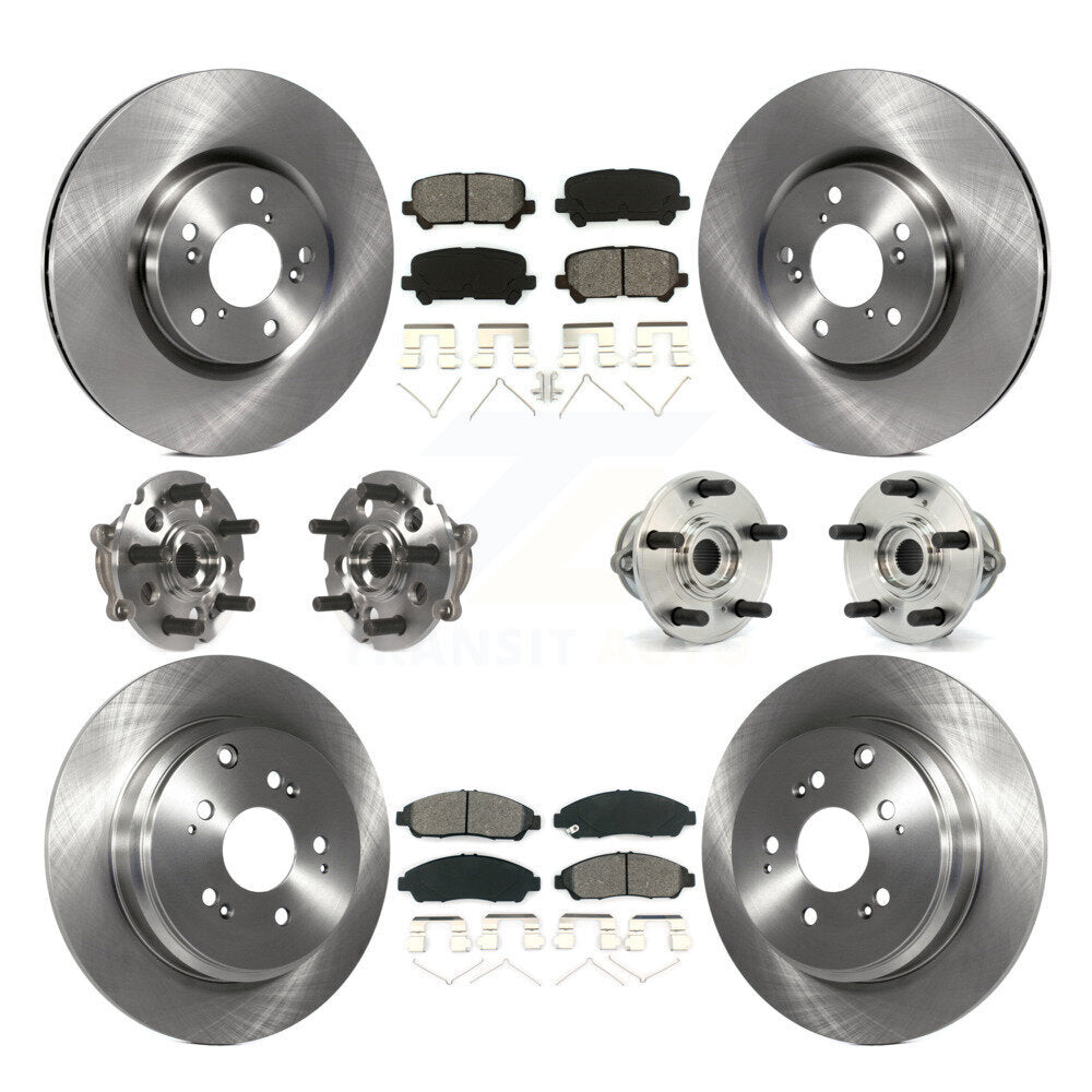 Front Rear Hub Bearings Assembly Disc Brake Rotors And Semi-Metallic Pads Kit (10Pc) For Honda Pilot Acura MDX ZDX KBB-109617